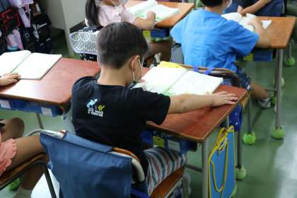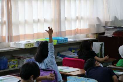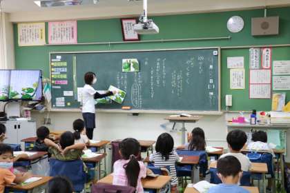 1年生の国語の授業の様子です。「やくそく」という物語の学習をしていました。登場する青虫の様子について文章から読み取っていました。