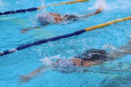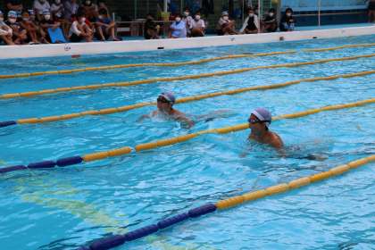 仲間の歓声を浴びて、真剣に泳ぐ姿がとてもすてきです!練習をした分だけ確実に力はついています。