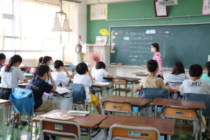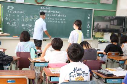 5年生算数の様子です。「最小公倍数の見つけ方」を一生懸命考えています。
