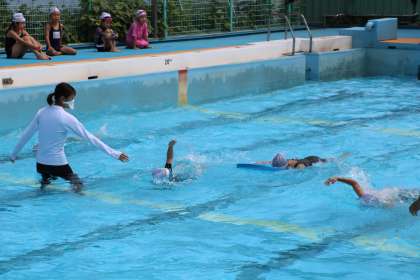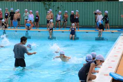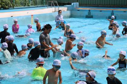 2年生体育・水泳学習の様子です。今年度最後のプールです。検定も、全力で取り組みました。応援も全力です。