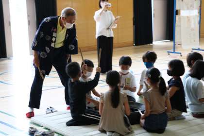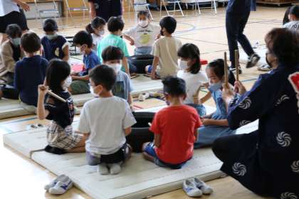 保存会の皆さんに、時には厳しくそして根気強く教えていただきます。