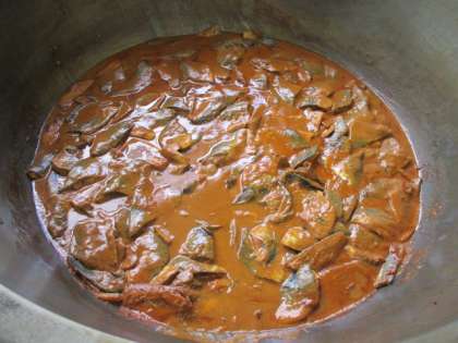 写真は煮る前と煮た後のさばです。