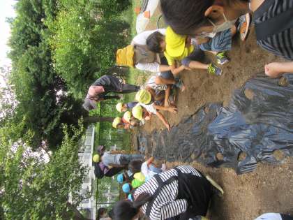お隣の砧小学校の中に借りている畑に、小さな茶色の種を蒔きました。