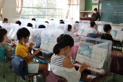 2年生音楽の様子です。「ぷっかりくじら」をけんばんハーモニカで演奏するグループと、歌を歌うグループに分かれて合わせていました。この曲に取り組み始めたときは、歌は鍵盤につられ、鍵盤は歌につられ、重なり合う音が響く・・・に、ちっともなりませんでしたが。今日はなんときれいなことか。とても上手で思わず拍手を送りました。