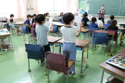 2年生国語の様子です。「どうぶつ園のしゅるい」の文章を、全員で分担して音読します。まずは文章をしっかり読んで、文章の内容や組み立て方を把握していきます。
