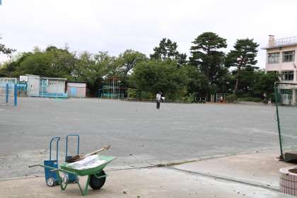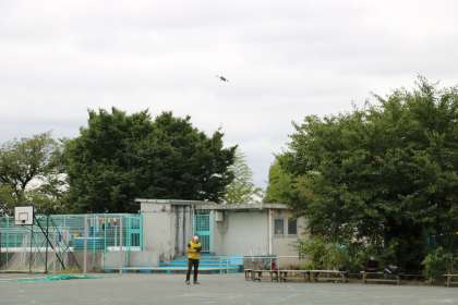 早朝から、撮影業者の方が校庭で準備を始めています。