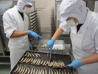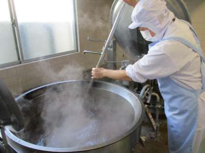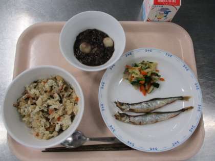 秋分の日の前後三日間がお彼岸になりますので、お彼岸献立として「白玉ぜんざい」を作りました。給食室の大きなお鍋でことこと煮たぜんざいはとてもおいしくできました。
