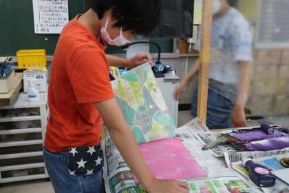 バレンでしっかり均等に紙を押し、刷り上がりを見る瞬間は、ドキドキワクワクです。