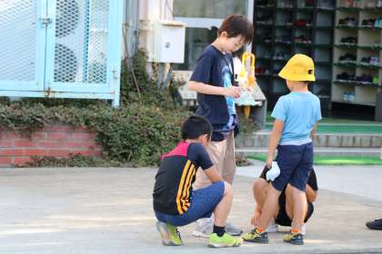 教室に戻ろうとした1年生が転んでひざをすりむいてしまいました。傷口を洗ったり、持っていた絆創膏を付けたり、心配してくれる4年生です。