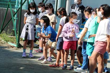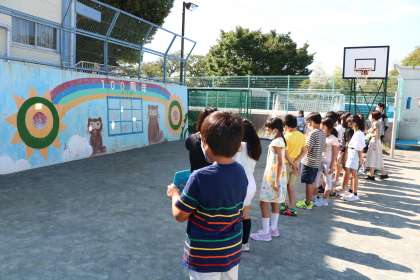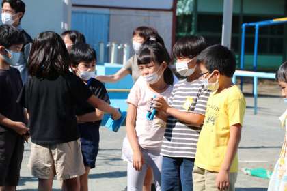 かがみを使って、日かげの的に日光を当ててみる実験です。うまく当てることができたかな?見つけたことや不思議に思ったことを出しながら次の学習へつなげます。