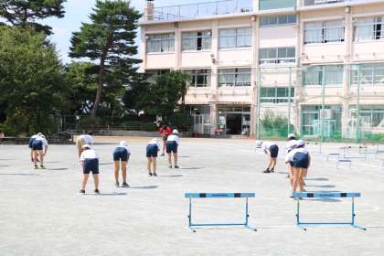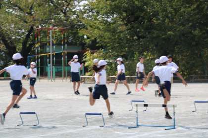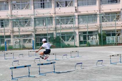 6年生の体育の授業の様子です。ハードル走を行っていました。ハードル走の授業も回を重ねるたびに上手になってきました。今日は抜き足を意識して跳ぶことを課題にして取り組んでいました。