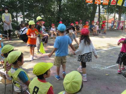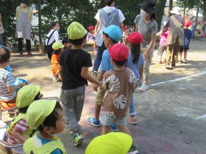 一生懸命走った年少組さんも、優しく背中に手を添えたり手をつないだりしてエスコートする年長組さんも・・可愛いです。