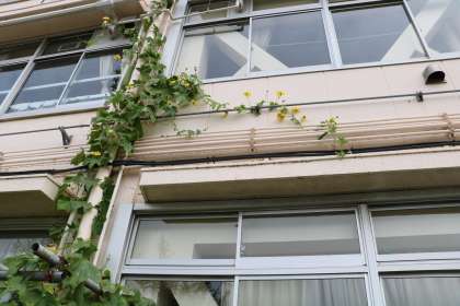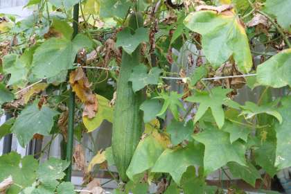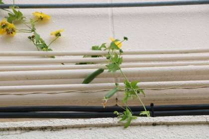 校庭のヘチマは、ぐんぐん上の方まで伸びています。子どもに