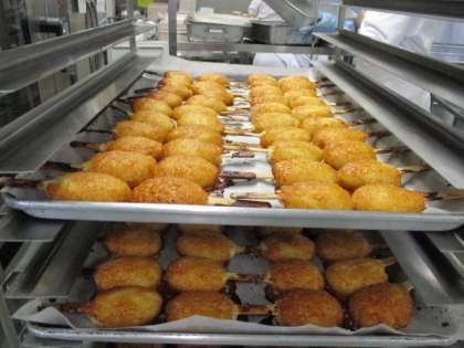 今日は120周年記念集会ですね。給食では120周年記念献立として「あたりつき五平餅」を作りました。クラスに3本ずつ、あたりが入っています。こどもたちは昨日から楽しみにしていてくれました。給食室もお祝いの気持ちをこめて、朝からがんばって五平餅を作りました。代々引き継がれたものを大切に、これからも砧小学校のためにがんばって行きたいと思います。