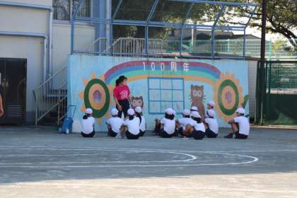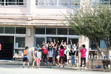 昇降口では、代表委員会が、今日の「120周年おめでとう集会」の最後の練習をしています。