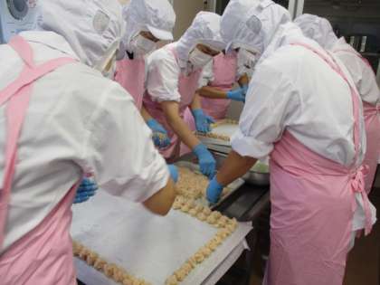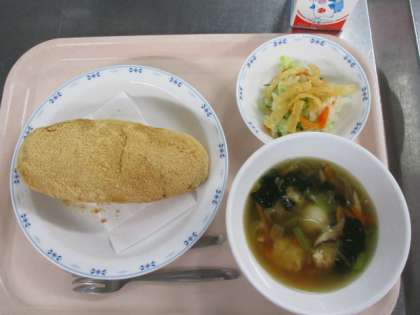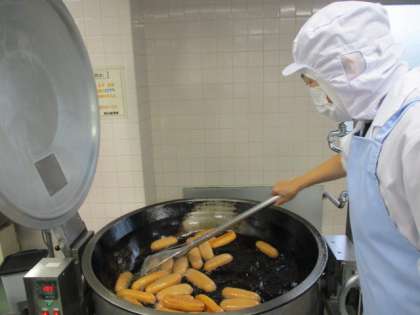 今日はリクエスト給食です。きなこ揚げパンはたくさんのこどもたちからリクエストがありました。肉団子入り春雨スープの肉団子はひとつひとつ手作りしています。一人3個ずつ行き渡るように、1700個近くの肉団子を作りました。