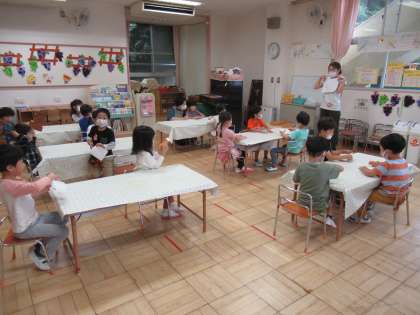 集団の中で、先生の話に集中して、作る工程を聞きながら作業することも上手になってきました。