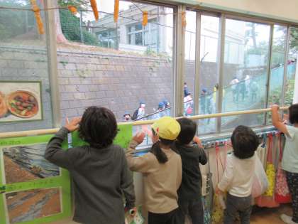 窓から手を振って、「おかえりなさい!」「ありがとう!」と叫んでいました。