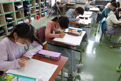 4年生算数「式と計算」の様子です。今日は、この単元のまとめの学習です。計算をするときのきまりがいくつかあります。(  )の中の計算を先にする、普通左から順に計算する・・・など。これは実生活でも役に立つ計算の学習です。