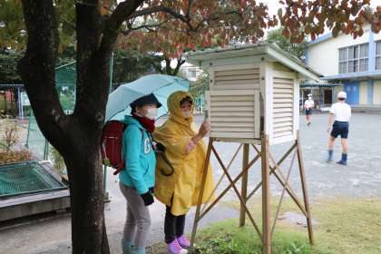 登校して来て百葉箱の温度計を見て、「13度だ〜!!」とびっくりしているのは、4年生です。