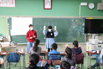 今日は、子どもたちが楽しみにしていたなかよし班ロング集会の日です。「つくって遊ぼう 砧っ子ランド」と称してなかよし班の友達と一緒に6年生が考えた工作遊びを行いました。6年生の作り方の説明をしっかり聞いて、すてきな遊び道具を作ることができました。