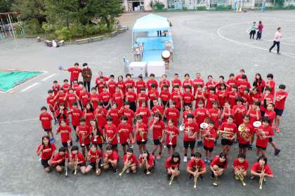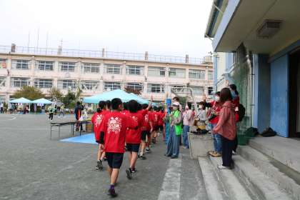6年生が集合しました。学年写真を撮って、パレードの出発地点へ移動します。