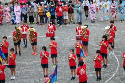6年生の鼓笛演奏で、砧っこ夏祭りがスタートしました。