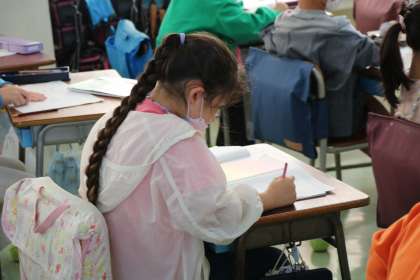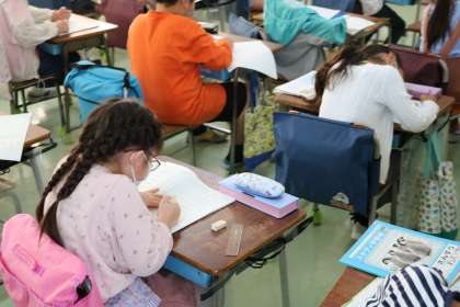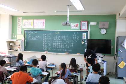 2年生の算数の授業の様子です。8の段の九九を学習していました。プリントとノートにたくさん書いて覚えていました。九九も残すところ9の段だけになりました。