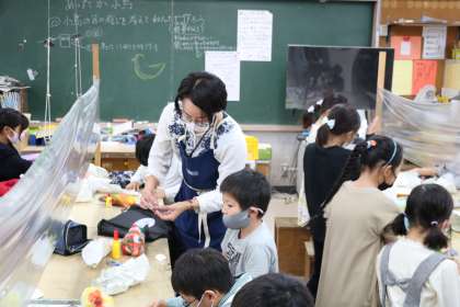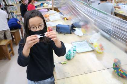 3年生の図工の授業の様子です。フェルトで作った小鳥に粘土で目をつける作業をしていました。形や色を考えながら作っていました。
