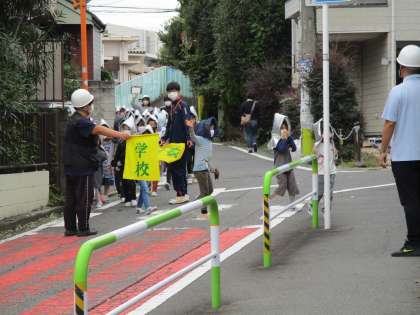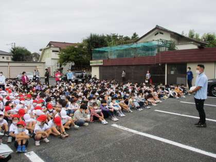 10月の避難訓練を行いました。今日は家庭科室から出火し、延焼の恐れがあるため妙法寺の駐車場まで2次避難を行うという想定で実施しました。子どもたちは道路を歩いて避難する際も静かに落ち着いて行動できていました。