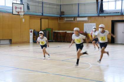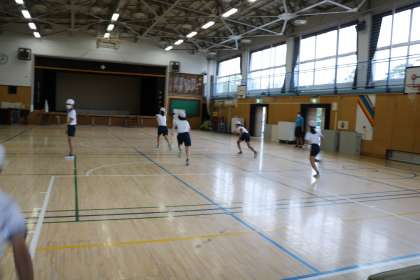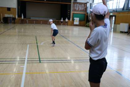 6年生は連合運動会前の最後の朝練習です。あいにくの雨で最後のリレー練習は体育館で行いました。