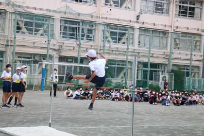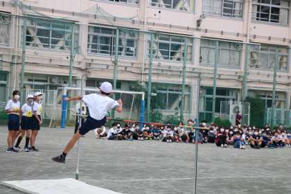 見事な跳躍を見せてくれる6年生高跳び先週に、拍手の前に「すげ〜」と、どよめきが起こりました。