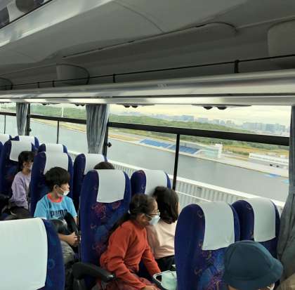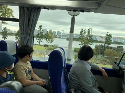 そなエリアを後にして、台場、中央防波堤近辺をバスの中から車窓見学しながら学習します。台場エリアはオリンピック・パラリンピックにも使われた施設があるかと思えば、豊洲市場もあります。ガイドさんの話は子供たちの興味を引き出すようにエピソードを交えながら多岐にわたる話をしてくれます。