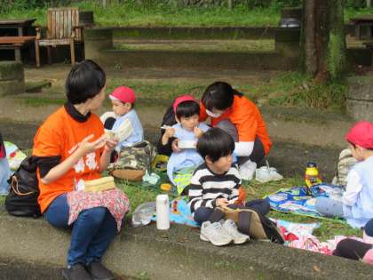 とてもおいしそうにお弁当を食べていました。後片付けも、頑張っていました。
