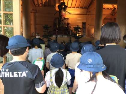 大きな赤い仁王様の間を通る意味や、閻魔様の話を興味津々で聞いています。どんな話だったか、ぜひお子さんに聞いてみてください。