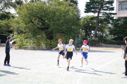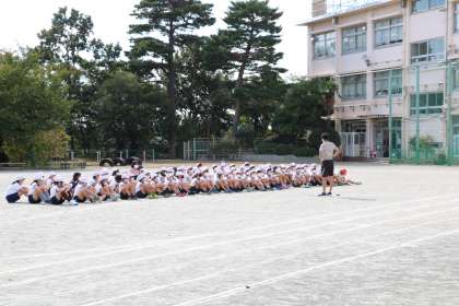 連合運動会が中止になったため、代わりに校内で陸上記録会を行いました。6年生の児童たちは、モチベーションを下げずに自分のベスト記録を目指してがんばりました。