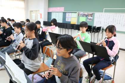 子どもたちはノリノリで「テキーラ」の演奏中です。音をお届けできないのが残念です。