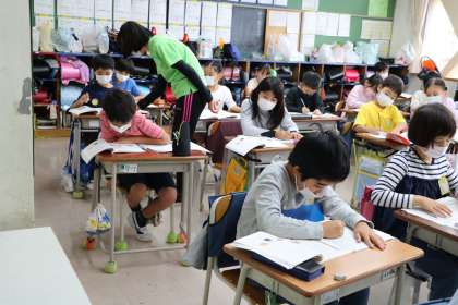 3年生国語「すがたをかえる大豆」の学習の様子です。説明文をじっくり読み取り、大切なことを整理して表にまとめます。