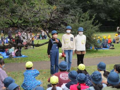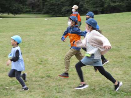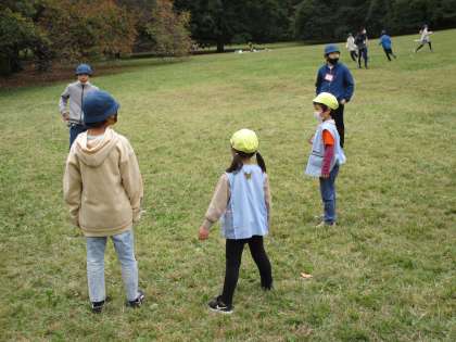 昨日の全校遠足では、5年生と砧幼稚園の園児との交流活動も行われました。スタンプラリーの後から、砧幼稚園の園児が合流して一緒にグループで外遊びを楽しみました。