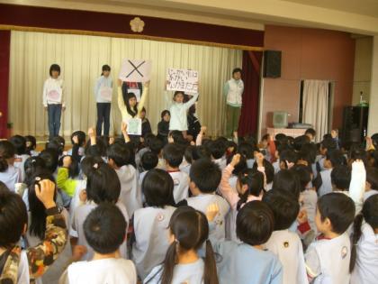 栄養のお話をして、好ききらいしないで何でも食べようね,という劇です。
