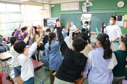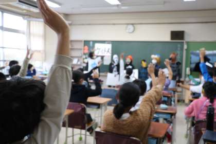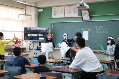 3階のフロアへもお化けを追い詰めます。最後は6年生の教室でもクイズは正解!