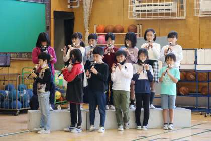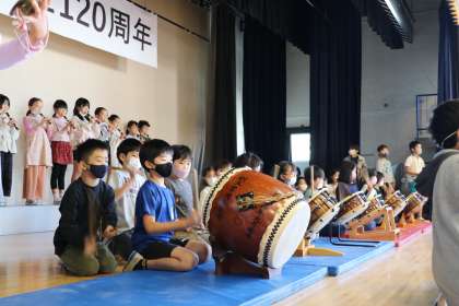 3年生石井戸囃子の学年練習の様子です。毎年11月3日喜多見区民祭りで発表の機会をいただいていましたが、区民祭りは今年度も中止です。しかし、砧小学校の伝統として、3年生がしっかり受け継ぎ今年度は11月17日に全校児童の前で発表し、19日の祝賀会でもお客様の前で披露します。