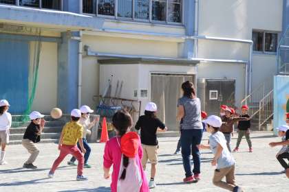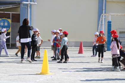今日のロング昼休みは1・2・3年生です。朝は少し寒かったですが昼休みはたっぷり日差しがありポカポカ陽気です。写真は1年生の様子です。