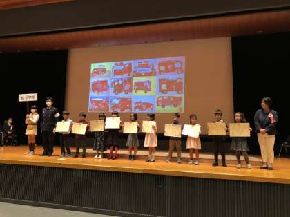 成城大学の中の記念講堂で表彰式がありましたが、外では、防災についての様々な体験コーナーがあり、児童消防団の子どもたちが活躍していました。6年生の男の子や、卒業生の女の子もいて、地域の中で活動している姿がとても嬉しかったです。