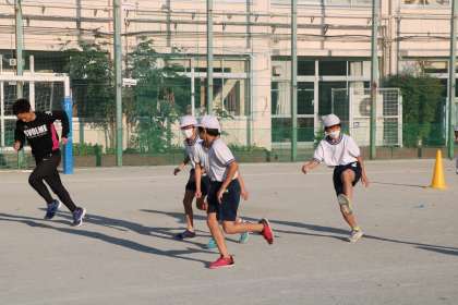 今朝の朝練習は、500メートルを2本走ることが課題です。
