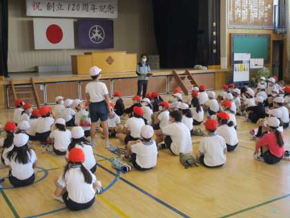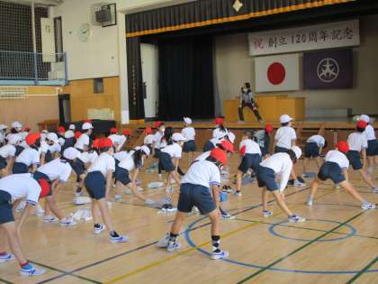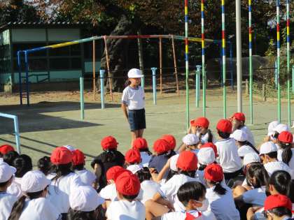 次は3年生の登場です。6年生が校庭でドッジボール大会をしている間に体育館で準備運動とルール確認が行われました。校庭に出てから児童代表の言葉もありました。さあ、いよいよ試合開始です。