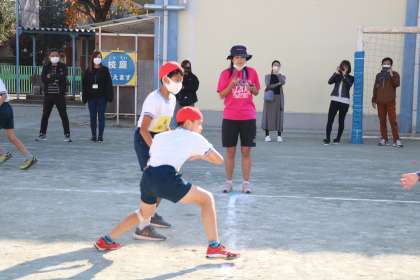 6年生の試合が始まりました。敵味方なく笑顔がこぼれる試合の様子は、見ているこちらも笑顔になります。仲が良い6年生です。