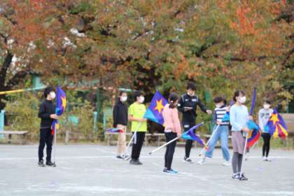 フラッグは校庭で場所を確認します。