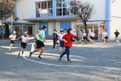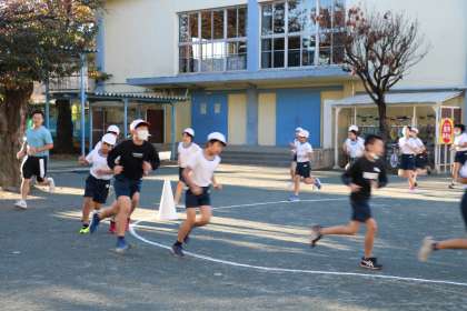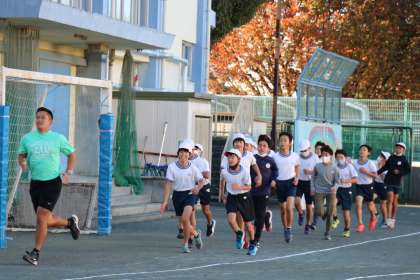 昨日雨で練習ができませんでした。今朝は気持ちのよい秋晴れの下、子ども駅伝の朝練習がありました。今日は予定通り1000メートルタイムトライアルです。