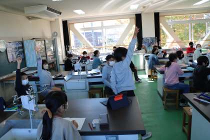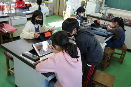 5年生の理科の授業の様子です。磁石の性質について学習していました。先生が持ってきた強力磁石の磁力に驚いていました。デジタル教科書も使って学びを深めていました。